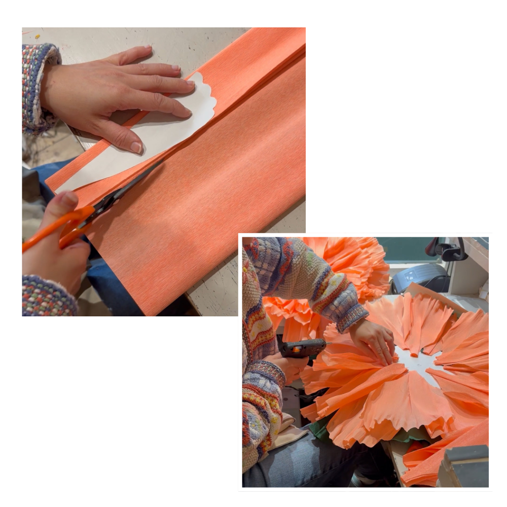 Once we had a flower we were happy with, it was time to build the centre! This part is made up from a strip of crepe paper that has been sliced approximately every centimetre. These are then twisted to create the stamen!