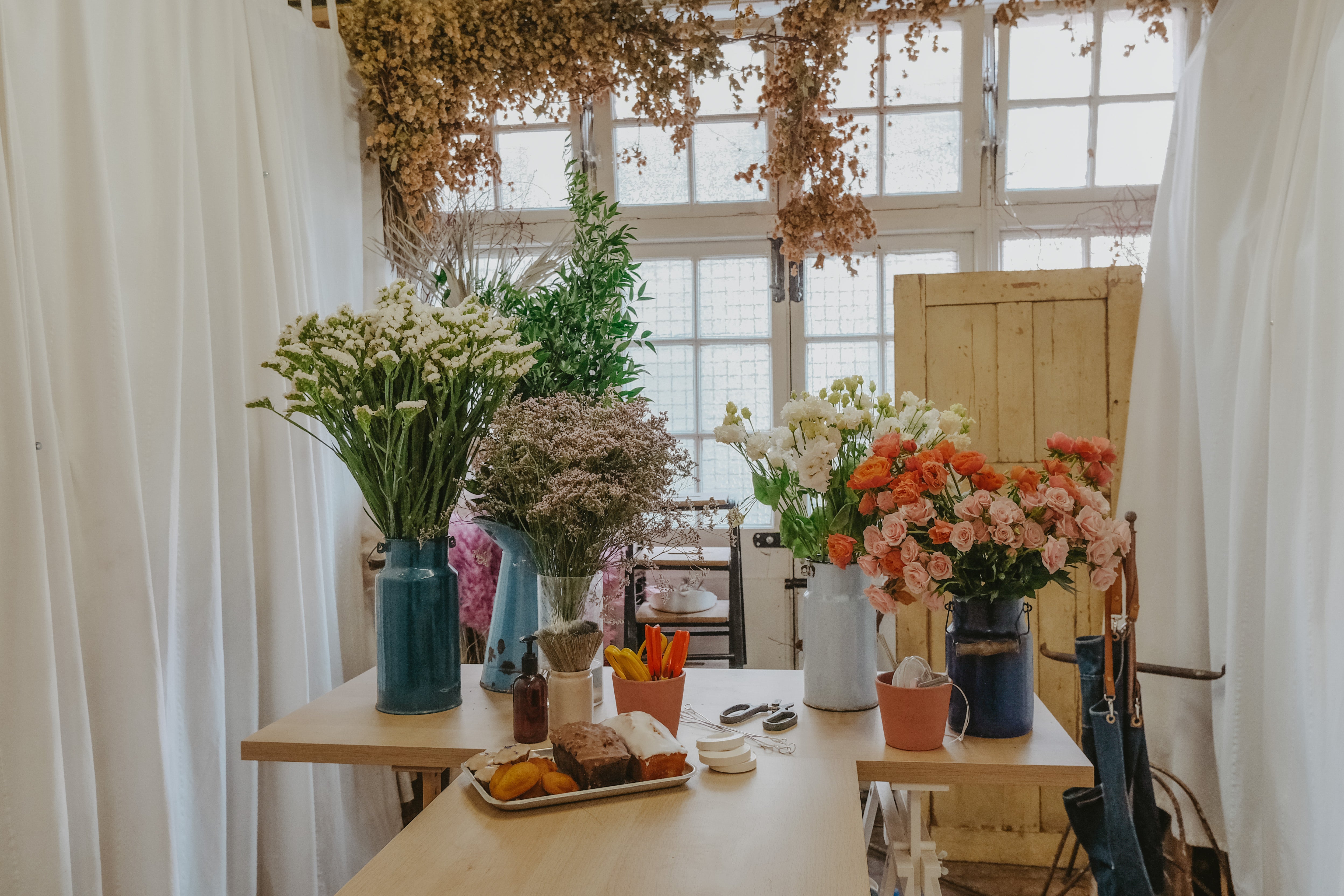 We have a maximum group size of 12-14 people depending on the type of workshop. We choose to work with small groups so that our florists have some time to go around the room and give everyone some individual advice and help wherever needed.