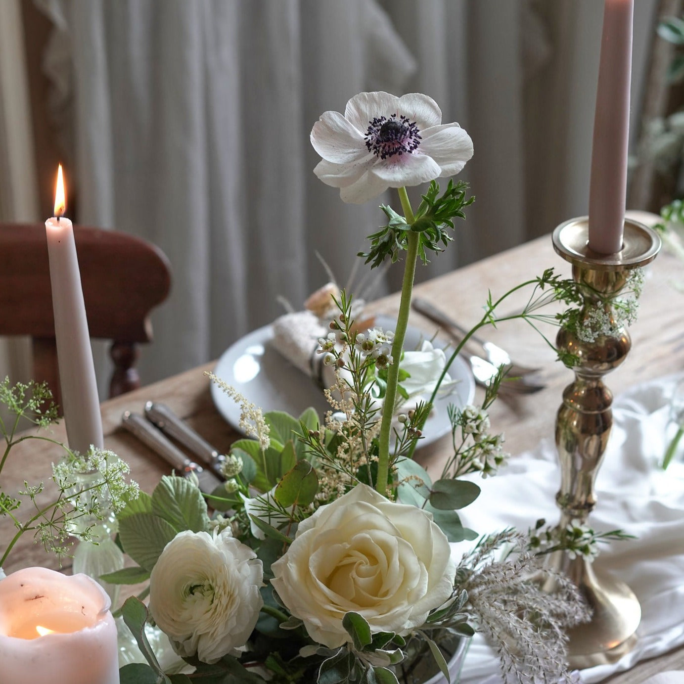 Dress up your wedding venue with our skilfully arranged bowl arrangements. These arrangements can be used to dress up pew ends or dining tables, but they also look fantastic displayed on a mantlepiece or plinth, effortlessly adding the finishing touch to your wedding venue. Classic whites and creams are designed in a meadowy style amongst delicate fresh greenery, for a truly sophisticated yet whimsical feel. The flowers are arranged in stunning stoneware ceramic footed bowls, in a stoneware clay and clear glaze. We use sustainable and reusable mechanics to hold the flowers in place, no flower foam is used in our workshop.